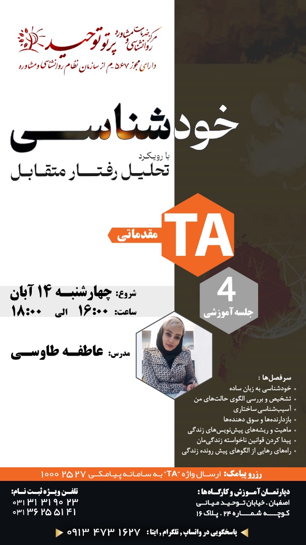 رزرو: ارسال واژه "وکسلر" به سامانه 10002527 ::: ثبت نام: 36255141 09134731627 ::: مکان برگزاری: مشاوره اصفهان ::: مرکز مشاوره توحید